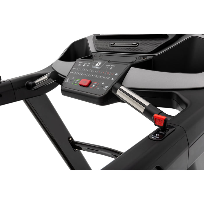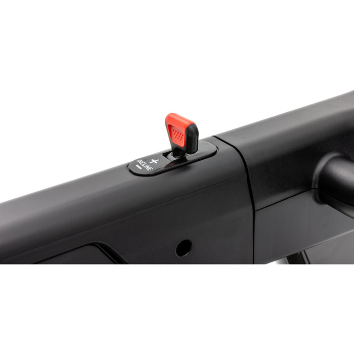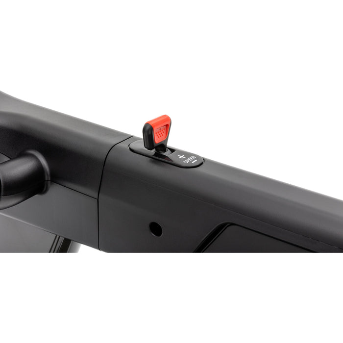 programs, including a goal-oriented Time, Calories, and Distance Series. The spacious 22" x 60" running surface and reliable 3.5 HP PowerMaxTM drive motor give you all the room and power you need for a comfortable workout. A full range of direct access keys makes interval training easy and with our bright 7.5” ClearViewTM console, you will stay engaged and informed while keeping track of the metrics you care about most. The new rocker-style speed and incline shifters are conveniently located on the handlebars for fast changes on the go.