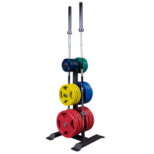 Heavy-duty, witha 1,000lb weight capacity and two bar holders, along with a new chrome weight horn design that hides scratches and wear, this weight tree is the new base rack system from Body-Solid. A very nice powder coat in a matt dark gray hel...