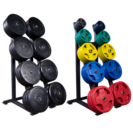 View full detailsConfigurable in either an 8-horn bumper plate or 10-horn standard olympic plate configuration, this vertical rack is a great storage option that gets plates up higher than other rack systems. We use them in our showroom to model our plate selectio...