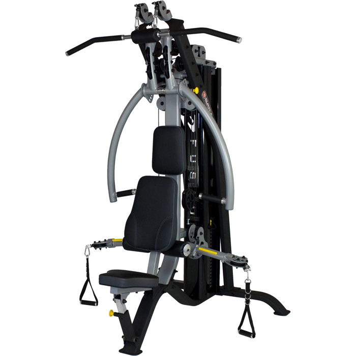 - Precision machined solid steel weight plates with individual bushings travel on solid, chromed, guide rods to ensure ultra smooth operation