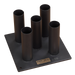 A simple, sturdy way to hold 5 bars at a time in an upright position. Great for the powerlifters who collect different types of bars at the behest of their spouses. Coated in a satin black powder finish and holds bars with 2" diameter sleeves. You can even put a hex shrug bar in this along with 4 other straight bars and it'll fit. Bars not included.