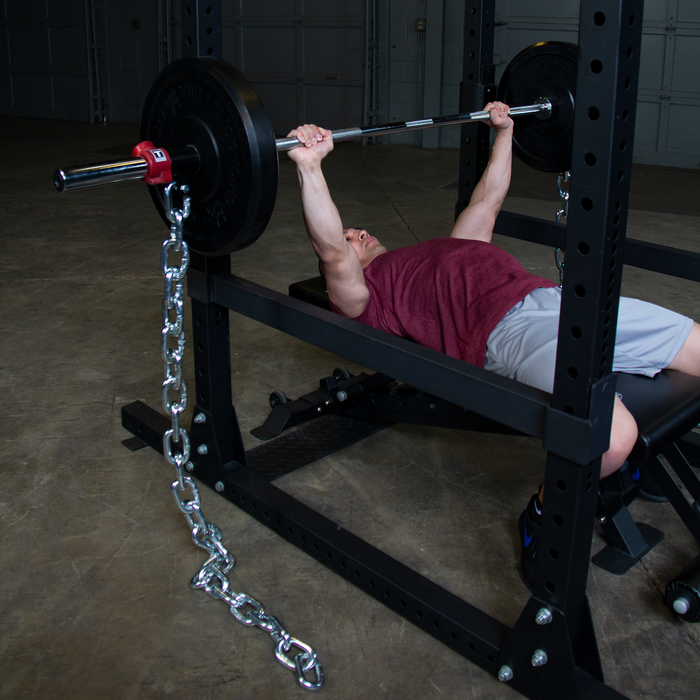 Body-Solid Tools Lifting Chains provide scalable resistance to lifts offering increased muscle contraction and performance. Ideal for use in squats, deadlifts and bench presses, these chains hang from barbells and provide varied resistance during lifts. Chains allow users to strengthen the weak point of lifts while also enhancing resistance and weight at the top of reps for better gains in strength and power.