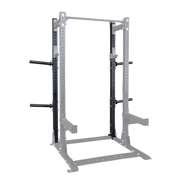 The SPR500 Half Rack is the base model of the highly-configurable powerlifting rack from Body-Solid. The SPR Series is one of the best in the business, offering a highly customizable configuration system that can enable all kinds of accessories and storage options that make this rack perfect for decked-out powerlifting garage gyms and full-commercial membership powerlifting gyms alike.  Weights are NOT included.