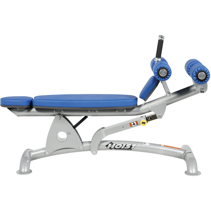 - Easy to use, gas-shock assisted angle adjustments for flat, incline and decline exercise positions
