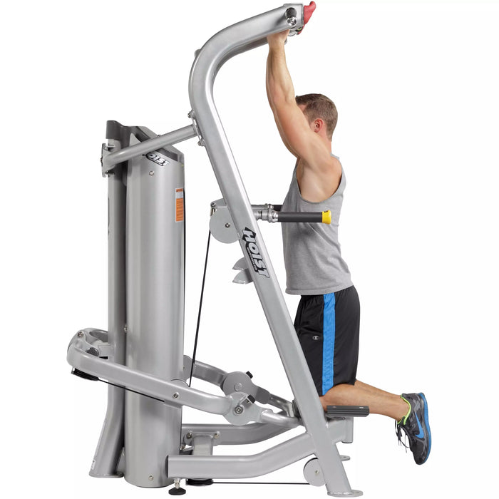 The HOIST® Chin/Dip Assist’s compact, kneeling design saves space for a smaller footprint in any fitness facility. Four pull-up/chin-up options – including HOIST’s patented Flip ‘N Grip® handles and rock climbing grips – give users the flexibility to choose. A fold-out knee pad for assisted exercises, can be placed in a stowed position for unassisted exercises easily. And dual-position dip handles, both wide and narrow, allow for user comfort and safety.