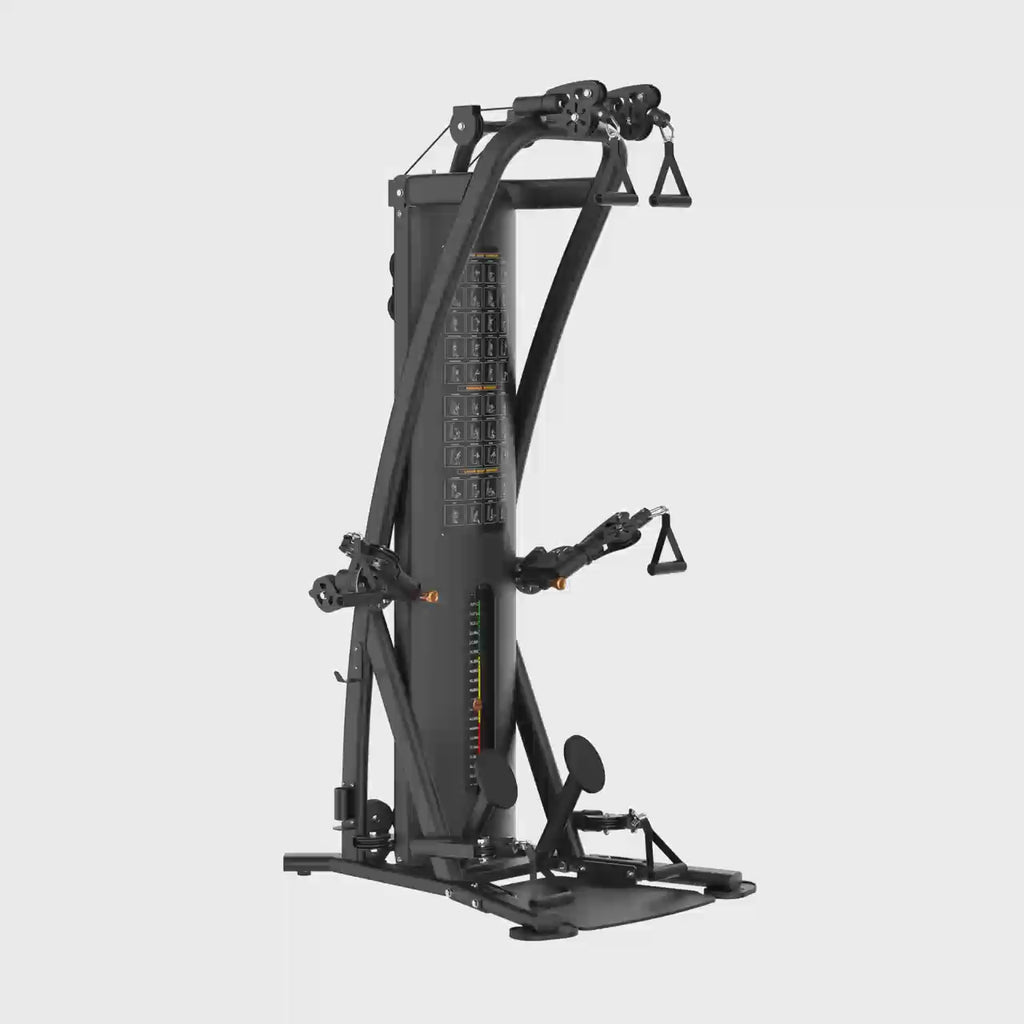 The HG20 "East Hampton" functional trainer from Hudson Steel is a spiritual successor to one of our favorite machines-- the TuffStuff Six-Pak trainer. With an incredibly compact design it can fit in to any space, even the corner of a master gym room, and provide a ton of functionality.