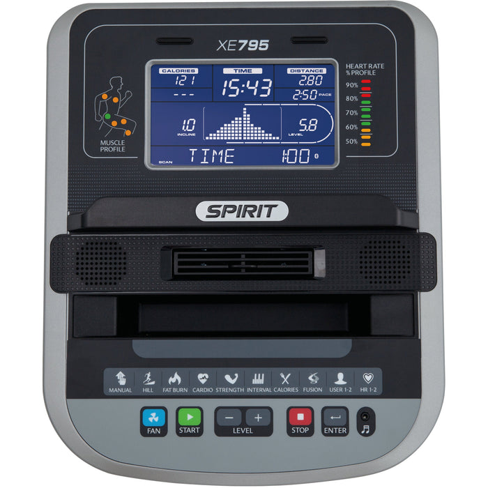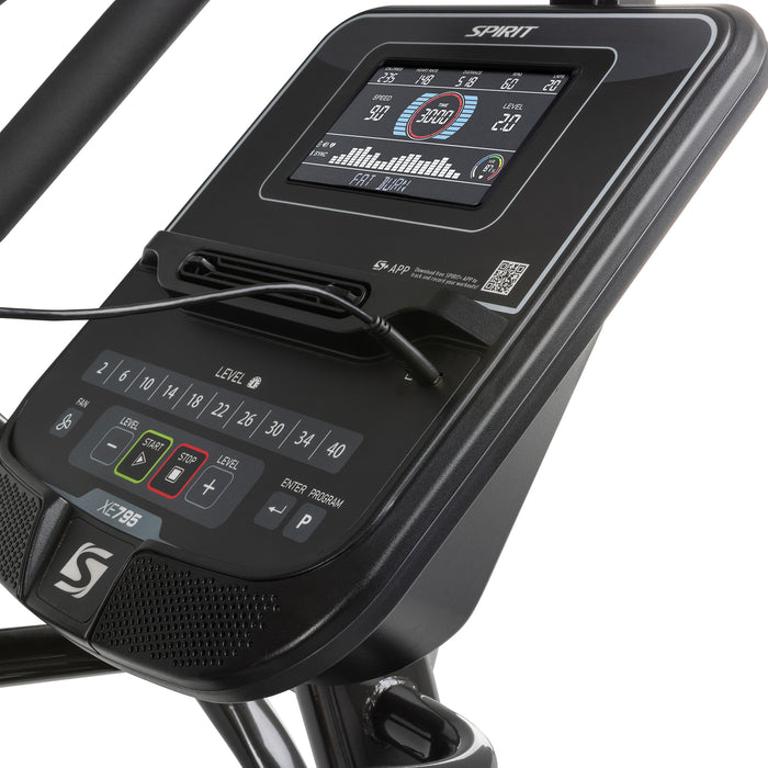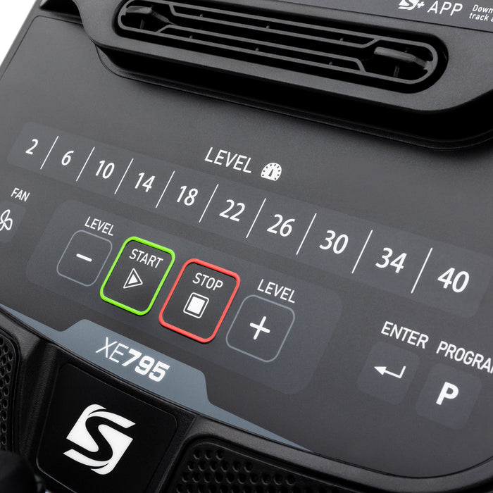 Enhance your fitness routine with the advanced XE795. Featuring a 7.5” backlit LCD display, preset programs, and Bluetooth connectivity, this self-powered elliptical trainer offers a smooth and comfortable workout with a natural stride length and superior support. Plus, its durable frame is backed by a Lifetime Warranty.